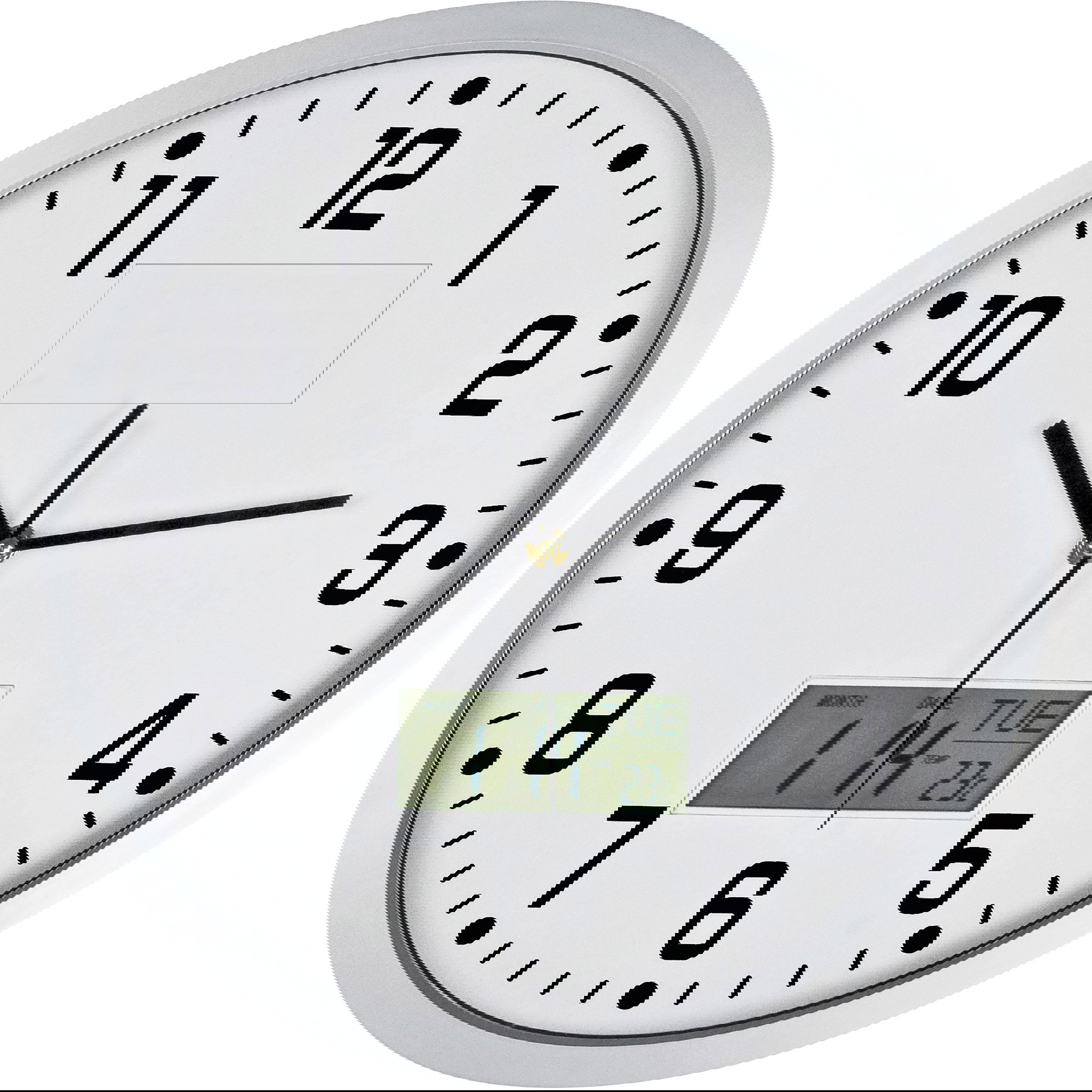 - Analoge Wanduhr mit großer Digitalanzeige
