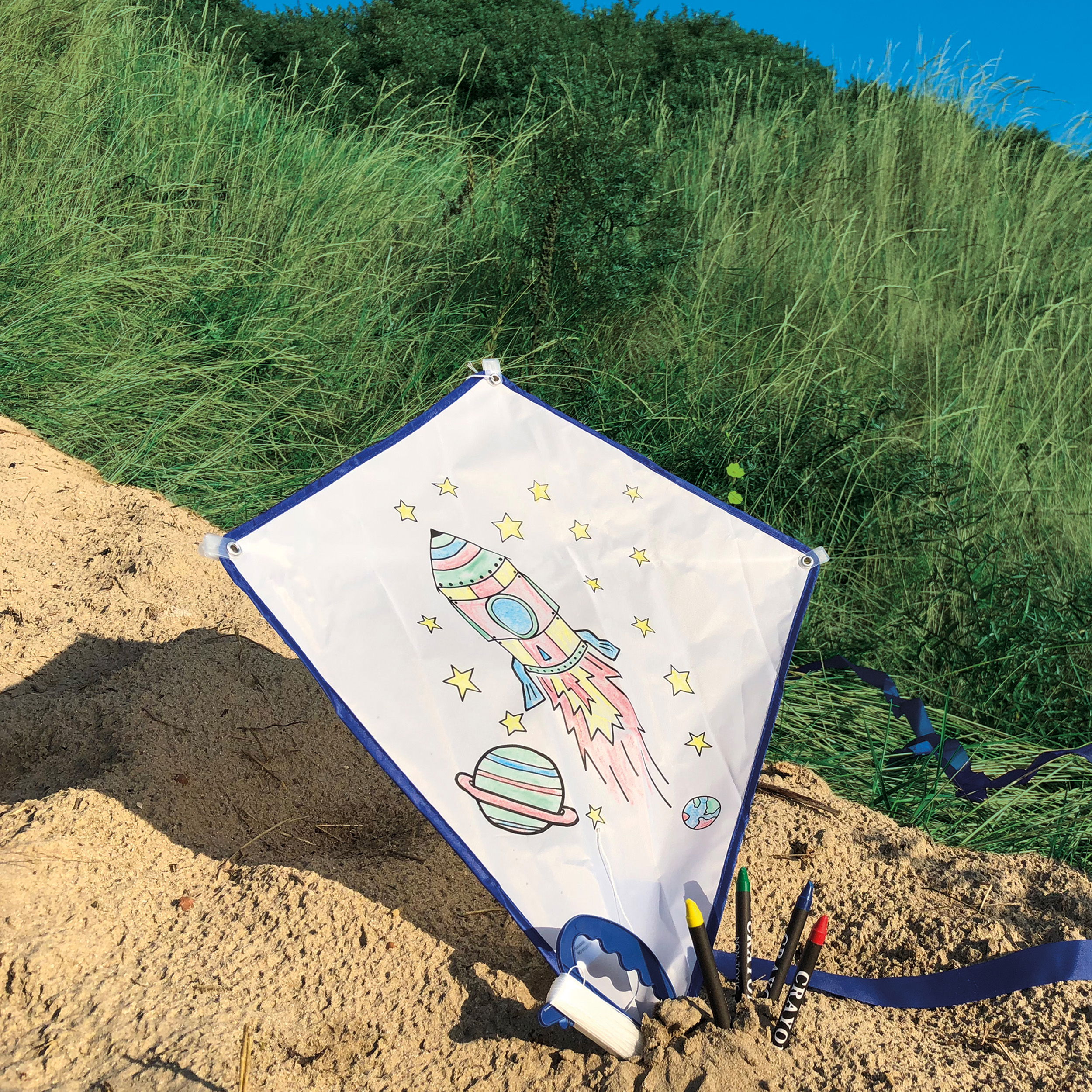 Komplettset: Das Set enthält alles, was für ein tolles Drachenerlebnis benötigt wird - 4 Malstifte, Kunststoffstreben, Schweif und eine Handspule mit Nylon-Schnur. Damit ist der Drachen flugbereit.