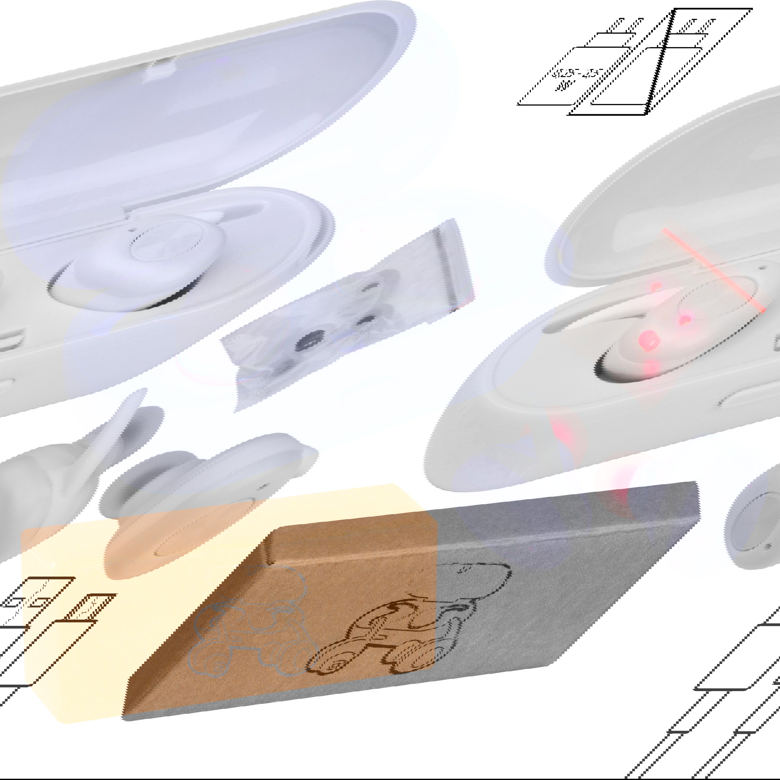 - Inklusive USB-Ladekabel und Ladestation, die zugleich als Box dient