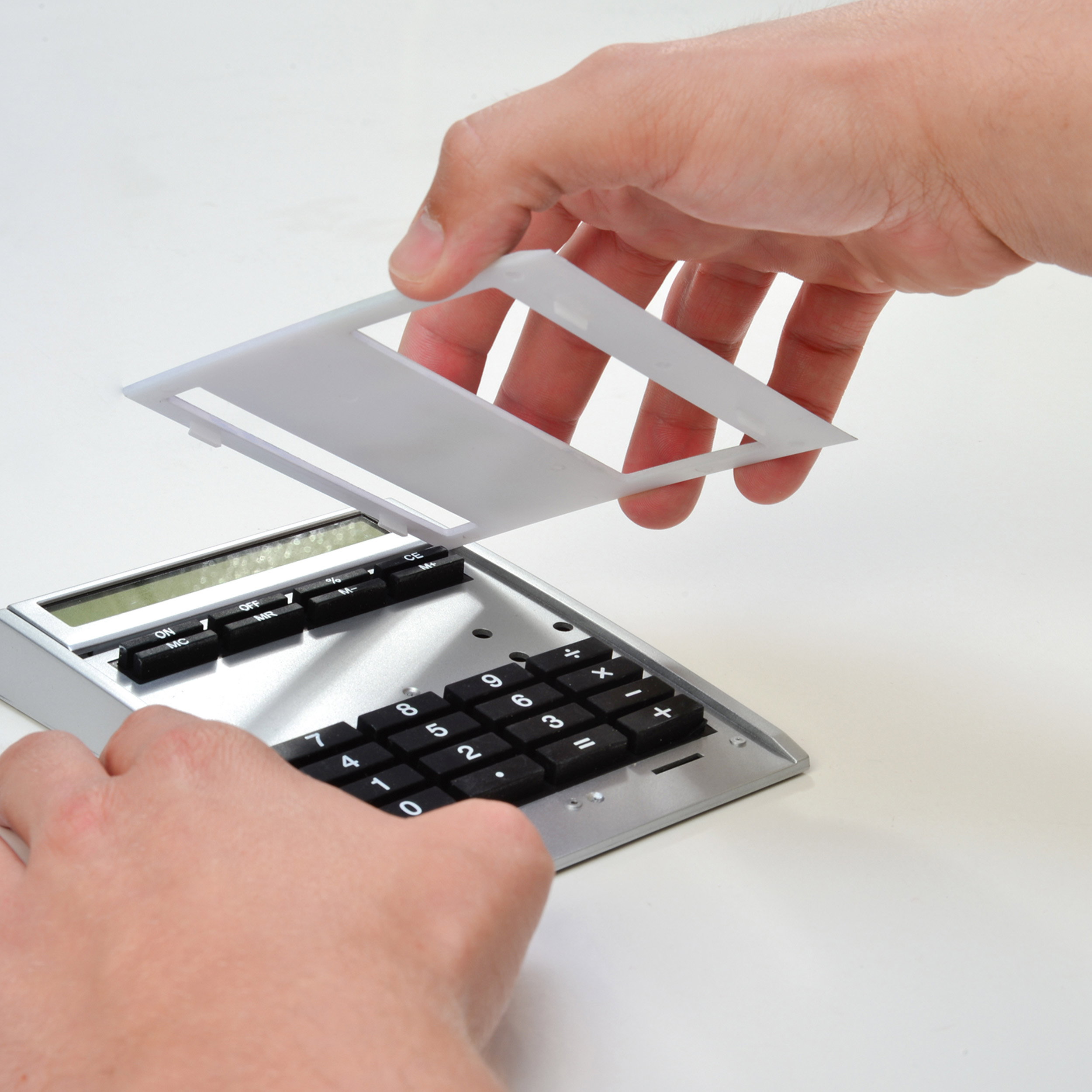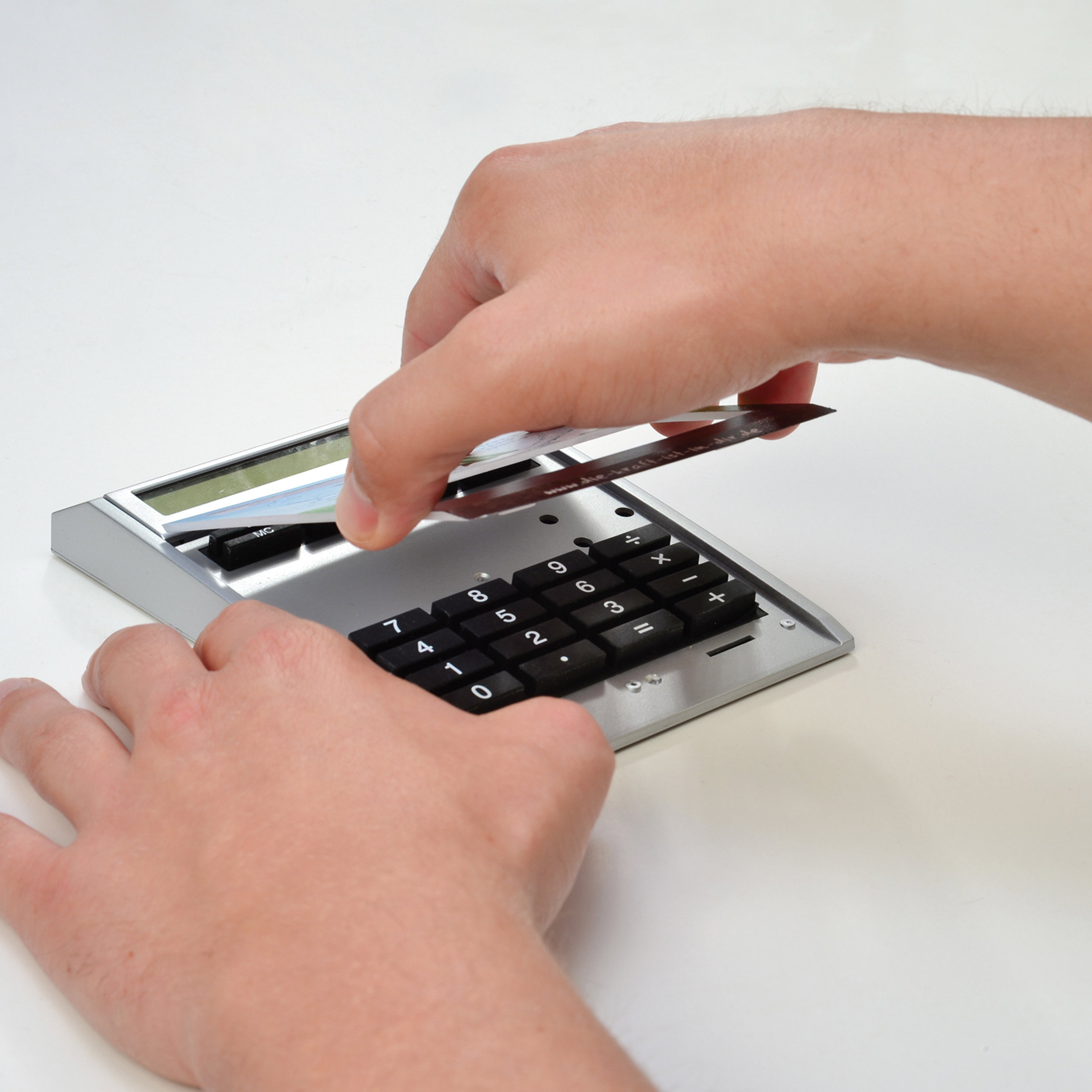 Werbeanbringung: Die digitale Fläche auf dem Taschenrechner kann individuell mit Ihrer Werbebotschaft bedruckt werden.