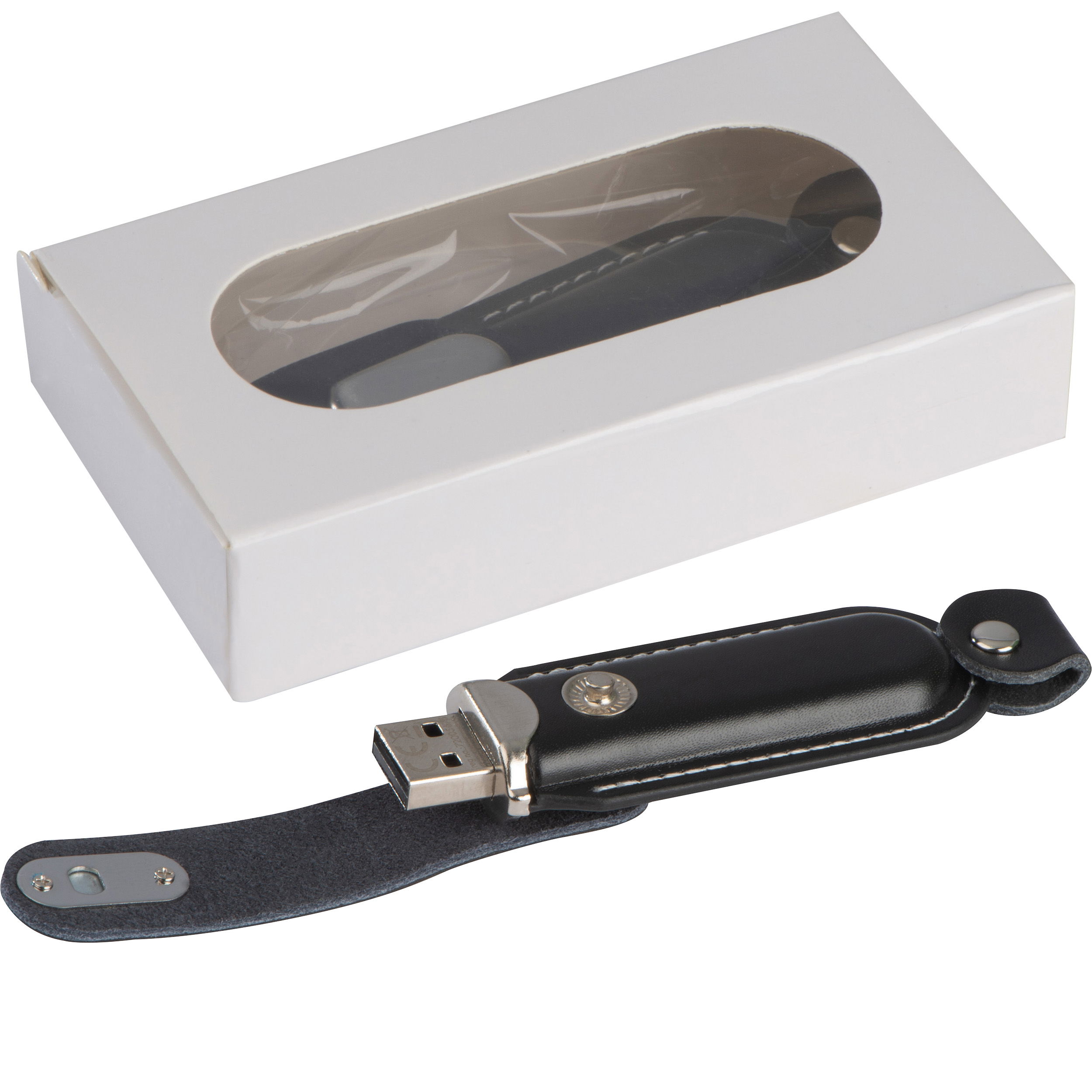 - USB-Stick mit 4 GB Speicherkapazität im eleganten Kunstlederetui